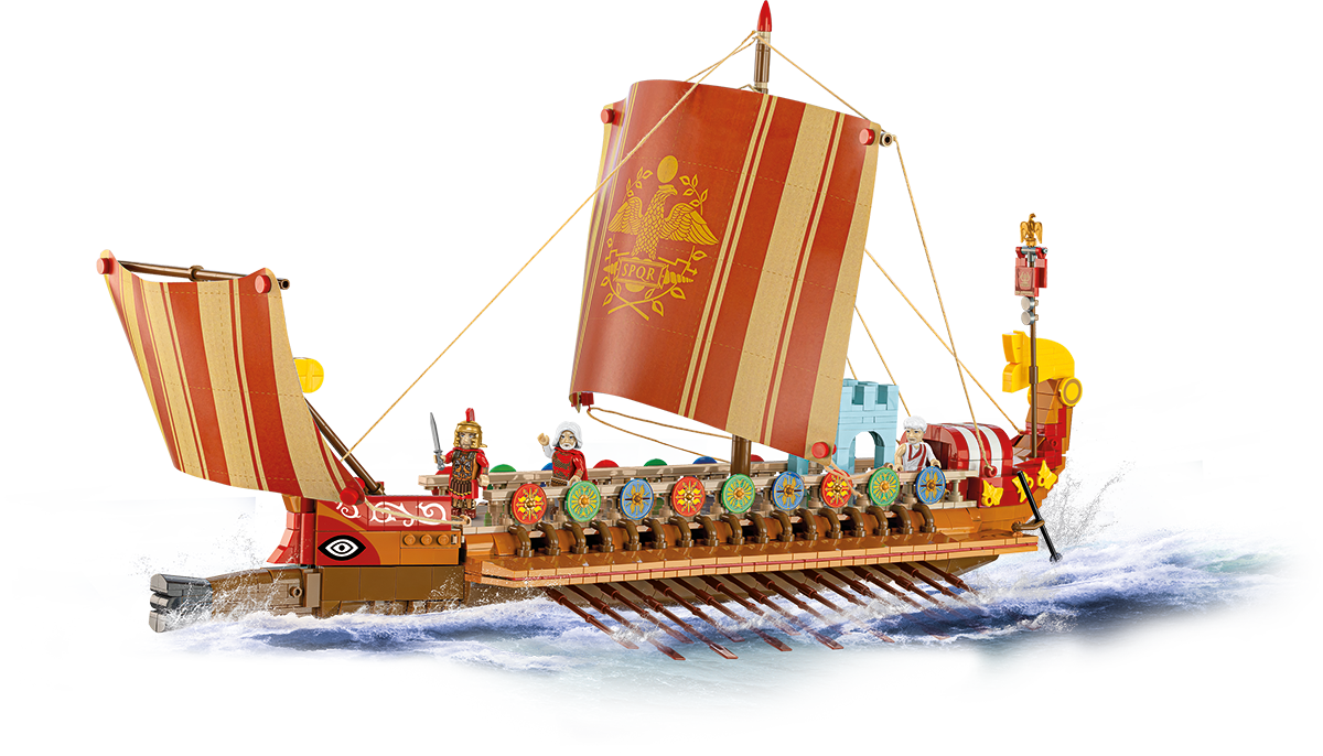 El set de barco de guerra romano te permite navegar por el mar Mediterráneo y crear un barco de guerra de la época del Imperio Romano.