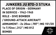 • A brick model of the Junkers Ju 87 D-3 STUKA – a set developed with attention to detail and proportions characteristic of the D-3 version. The "W" wing configuration, winter camouflage from the Eastern Front, bombs suspended under the wings and a realistic silhouette make the aircraft instantly recognizable.